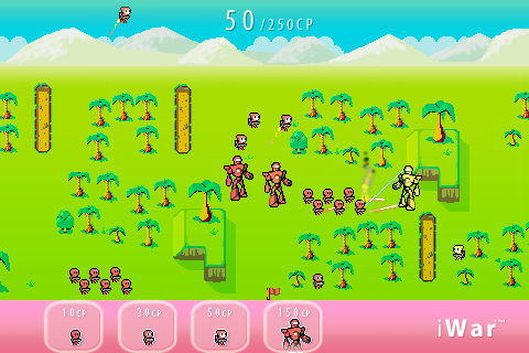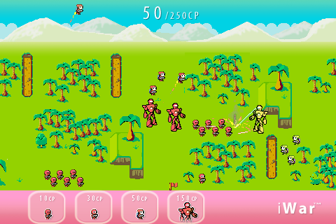 I originally planned it to be very flat and minimal, but as I work on it it's becoming more Apple-like with subtle gradients... Still not sure on the overall shading style. I think the mechs are working quite well so I might go back and adjust the troops to have a bit more shadow. I just put those particle smears in at the last minute and I agree the pixellated jet-pack trails are more appealing, so I think I'll go back and make the lasers more consistent with that.