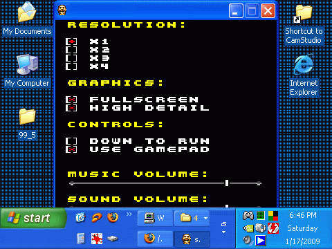 http://xpadder.awardspace.com/Xpadder simulates keypresses and mouse movements using a gamepad. This allows you to use your controller to play PC games with poor or no joystick support (including DOS games in a Windows DOS box and Shockwave/Java internet games). I didn't need this program to play Spelunky but I would just like to say it's awesome.  This is how I'll browse the internet from now on. Anyhoo, time for a bug report. -pressing the test button will put whatever you selected where the test button is. -Test mode doesn't disengage when you play the regular game. Sending you back to the editor when you die or reach the exit. one of the more esoteric bugs I've discovered is that if crank your resolution down low enough that the opening menu doesn't fit like so...  The buttons won't work when you click their actual positions, you have to click their "assumed" posistions. It's why I asked for a 2 page start up screen earlier, game still runs when you hit enter so it's not really a big deal. Oh and did anybody know this?  Are we going get a full Spelunky font for the level editor by the way? That would just be awesome.