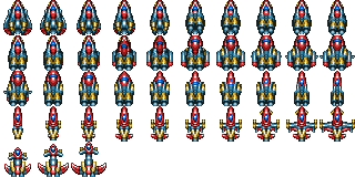 I didn't draw this, but I animated it.  Sprite sheet:  This is for the new tutorial for Flixel iOS called FlxShmup. I’m hoping to show how to create a shmup for iPhone using Flixel. I think the GIF is running too slow. Flixel has a great property in the addAnimation command which is frameRate. It makes it easy to tweak this kind of thing. The last transition needs some more work. Spaceship pixel art by Carl “surt” Olsson.