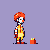 okay...   the sideways animation is way off any more tips? I was thinking this kind of thing,  if it's meant to be a relaxed walk rather than a march / run. Though it does work fine as it is. I think the problem with the sideways one is that his feet are never off the ground. When moving forwards his legs should lift up. Did a hi-resify  her dress is messy, was mainly concentrating the rest of it. You lost the lovely shape of her left eye, screen right with the highres paintover. Hmm yeah I can see that. I think the high res eye is closer to what I originally imagined though, and it didn't work out in the low res. But her cheeks look puffy anyway, and the high res doesn't add anything to it. It's always hard to escape that 2x filtered look.