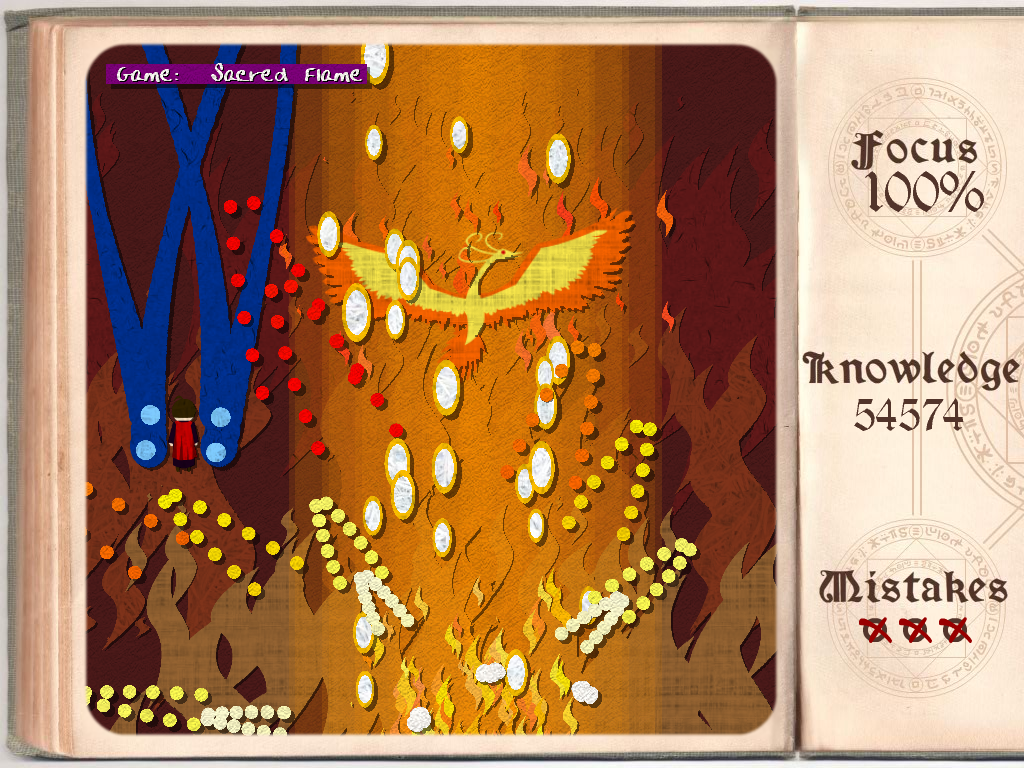 Well, got a new title screen. Or really, just a title screen at all. It looks a little better in motion (all the motes drift up from the book and do additive blending on each other) but it still feels a little barren. I'll probably want to deal with it later, but for now I'm mostly just content to have something there. Spent a lot of time doing boring UI stuff, but it's boring UI stuff that needs to be done. And the game feels better for having it done which is nice. Looking forward to finishing it and not having to think about UI again for a bit though. Also, started adding music! Which makes things feel... cooler. It probably makes it at least 20% cooler. 7 hours plus some change until IGF deadline... Crunch crunch crunch!