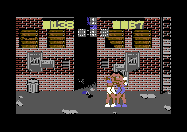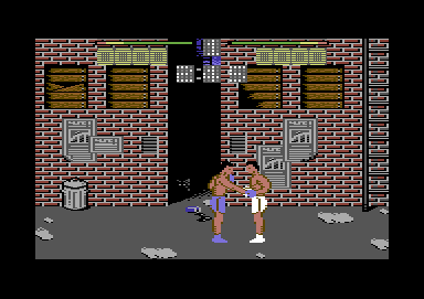 It's obviously a homoerotic fighting game. With an evil cat in the alley.