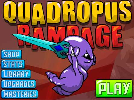 We ripped out the old ui and slapped in a prettier one with better functionality and crossplatform versatility. What's all that jargon mean? GOODNESS. Fonting (or typography, for you fancier types) is hard. We finally managed to find a font that aptly gives Quadropus Rampage some more character while keeping to the simple vector style graphics. All it seems to have taken is some jumbled letters, highlight and shadowing, and BLAM! Off to the menu races. Once all the effects are in it will look as though he's skydiving, the background shakes slightly and a flurry of detritus blows upward. Plus! He'll have a nice angelic glow. BECAUSE WHY NOT. If you've got any feedback on it we'd love to hear it. My personal stretch goal with this game is to make UI's that are more internally consistent. So far, following a few rules I literally wrote out to constrain myself, I've managed to keep the in-game and main menus similar in feel. ONWARD! TO UPGRADES!