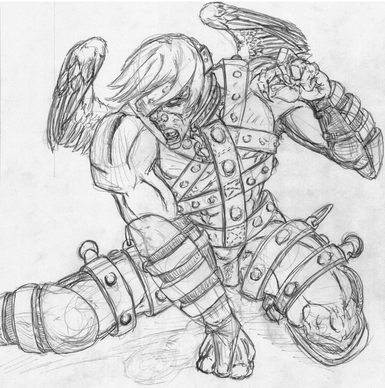 Strappy, feral bondage angel. Enemy of Gunslinger Devil.