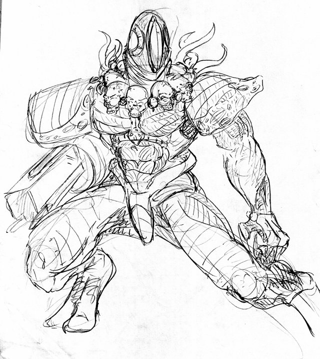 An idea hit me for a scifi story based off Journey to the West. This was the design I worked out for Sandy, who is still a banished member of t3h EVOL!!!11™ and scared machine society.