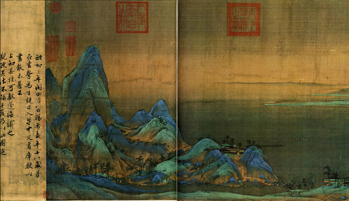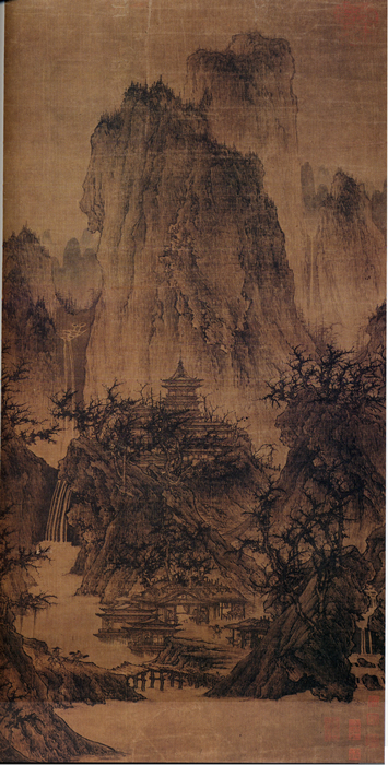 I'm very fond of Chinese Landscape paintings from around 900 AD up through the 18th century.     The two in the middle are from a 10 panel wide piece that would go around a whole room. The two on the ends are from Fan Kuan. Also, this is a cool thread  .