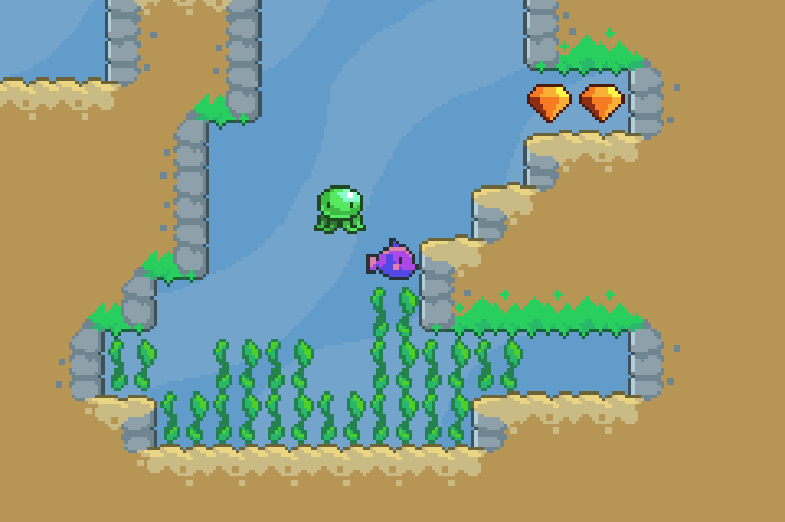 What would really help the game is some sort of sytem to detect which of your aquamen are "doing best" (as in, are furthest along the path to the exit), and nudge the camera focus towards them. There's a handful of ways this could be done (it's kinda like doing racing game position on course detection), but I will admit that none of them are *entirely* trivial.