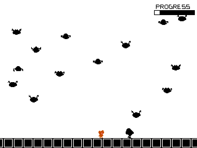 Agreed - it's not a very apt comparison. I played around with a variety of different movement and jump speeds, and these large, fast jumps seemed most interesting to me. Player and enemies moving slower in general, which looks more like bullet hell, really doesn't feel like jumping around - it's more like the water levels in Mario, I guess, which are always kinda unexciting. I liked this frenetic yahoo atmosphere more. One thing I might play around with is either a parachute or a time-slowdown device that the player can activate from time to time. Strategic slowdown is good. That part at the end of level 3 where you're falling through a cloud is not fun partly because it's too fast. I'll also play with patterns, for sure. Jumping is quite imprecise, which I don't feel fits well with the idea of avoiding massive hordes of randomly located enemies. But it is somehow enjoyable. I'm glad you found it somehow enjoyable; somehow enjoyable's what I'm going for.  How exactly does it feel imprecise? Is it just overall too fast to get your wits straight? Or do you feel like you don't have clear enough control over the jump height? As far as steering through the air, that should be 100% precise, though very possibly too fast. Thanks for the comments, guys. Anybody like or hate the sprites? This is one of my first times doing pixel anims.