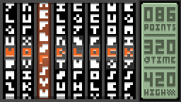 I was trying to create some sort of black-and-white mockup of a game with only two colors. Unfortunately, my computer's been real unstable for the past several days and the program kept crashing before I remembered to save stuff. I even lost an amazing animation with the character that was one of my favorite attempts at a running animation so far. I did manage to save a few things, though some of it's a bit upscaled since I posted it on my blog:      The first one contains the only frame I managed to save from the animation I lost since I had it copied with the clipboard, and on it's own it doesn't very well illustrate the legs, but in motion, it certainly did. I also updated my avatar:  Also, my first attempt at animated GUI-esque stuff. I might make more stuff like that later.