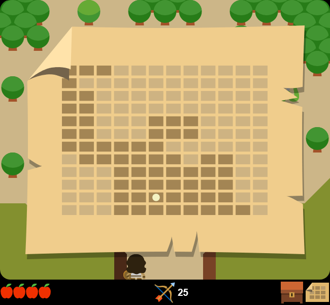 I like the clean style! her head is way too big though  water/waterfalls look great! maybe a bit of foam/splash would make them even nicer? the apples are an interesting choice. but I think the hearts are so universal, they would not stand out as shameless copies. On the waterfalls, I am overall trying to keep a good balance of detail vs. minimalism, for example if one thing gets too detailed then a lot of other stuff looks too plain by comparison. But maybe I'll try adding some particles for the spray and see how it feels. I like the apples! Both the apple icons on the left and the map icon on the right are way too close to the edges of the screen tho IMO. You should make the horizontal margin a bit bigger so that the icons don't lick the edges. It looks like the image has been cropped a bit.