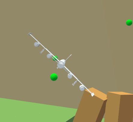 One of the new toys to play with in the sandbox:  They pick a random wing and make it go away. In this case the first one to go was the elevator and it ends up getting caught on the rudder which looks pretty awesome. Without that though I was dead in the air, and then they pick me apart piece by piece.