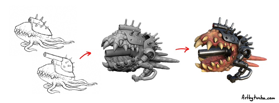 Here is some artwork for the project, some concepts for the main character and the highpoly and ingame models