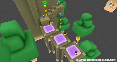 So, Level 1-3 is done for the moment and I've got my new bee enemies working!  I suspect they will cause... quite the buzz... Moooving on! I've got a good chunk of work done on Level 1-2 which makes me feel pretty good about having a nice presentable World 1 to show off to folks at GDC in March.  Notice the fog effect? That's actually three things working together...  The camera background colour...  The scene fog...  And finally, my custom gradient objects to simulate height fog.  Put it all together and you've got a nice misty forest feel. Now, I've had all the parts needed to do this in place for a while now, but it was only this morning that I figured I would write a simple script which ensures all three colours match up when the level is loaded. In short, I simply grab the camera background colour, and then set the fog colour to match and finally I set the colour of the gradient object material to match as well. This should make it nice and easy for me to make changes and adjust the background colours of levels to get them just right without having to fiddle with all three colours individually. It's not a HUGE thing, but when you're working on your own, every little time saver like this can really pay off in the long run. Next week I should be finishing off work on Level 1-2 and then moving on to, either, 1-4 or the first boss level, not sure yet... We'll see next week! See you all then!