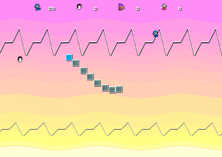 It's a multiplayer physics based party game where you have to surf the blocks as they come and you can shoot other people to blow them away. It's a bit fun with four players.
