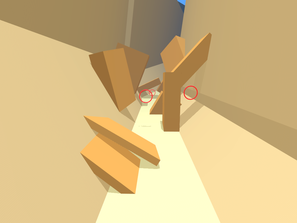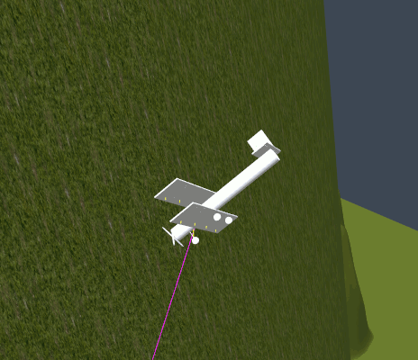 I put some Toy Commander music on and had a rip roaring time chasing after planes with no pilots. The fact that the heavy could fly better than I could without a pilot was a bit unnerving.  I mean, this was like a modern day take on Pilotwings 64. Holy shit this was fun. Damn, that sounds like fun. What game were you playing?  The heavy is actually a really shitty version of that plane that I built in haste. I've had one of similar design that has been a dream to fly. I am struggling with how to maximize the value of having a really well designed plane in terms of gameplay. It's fun to try a new design and make something fly, but there is a pretty big window if all you want to do is get something off the ground and able to fly. Is the solution to have different challenges like a Pilotwings game? Unless they were very fine tuned for a specific build in mind they would be achievable with any number of designs. After saying that out loud that actually sounds like a good thing. Maybe I can take the idea eigenbom had and have different courses to run with rings to fly through, lets say 20. You could theoretically build a single plane to hit them all or build a plane with 20 smaller planes attached that you detach and fly through the rings with. I can't imagine a plane like that would fly very well but I guess that just emphasizes the sandbox approach to this game. A ton of stuff to explore with combat related gameplay also. I really want to build a plane and add armor plating to the bottom of my wings and fuselage to protect from gunfire at the cost of weight and whatever other parameters are in play, such as cost. Anyway, here is an errant missile reaching the limits of floating point accuracy:  This was at about 1000 m/s, and while still very stable in terms of flight path, you can see the precision starting to deteriorate.